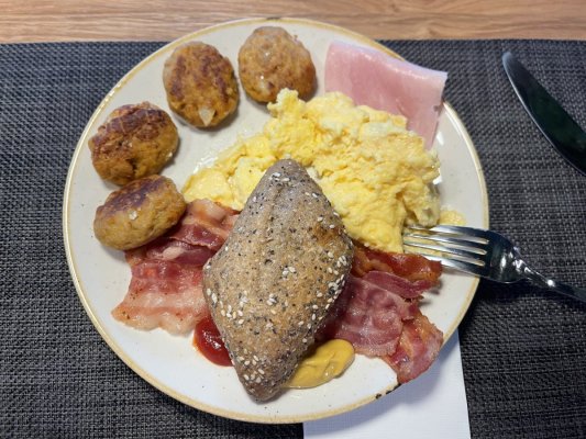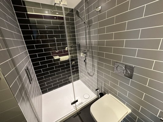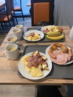 I am very disappointed with the hotel. The only pleasant moment for me was the ... Di più I am very disappointed with the hotel. The only pleasant moment for me was the guy at the reception, who knows a little Ukrainian, he is incredible, thank you. Everything else, for me, as a person who has experience staying in hotels, is a misunderstanding. 1) Parking. Parking is possible only if you arrive during the day, and if you have already found a place, it is better not to leave. 2) Number. View of the construction, forge a maximum of 1.6, or even less, the ox in the shower drains outside. 3) Breakfast! This is my biggest disappointment. We came for breakfast 1.5 hours before the end, but there was almost nothing! 1 piece of sausage and cheese each, 2 croissants, 1 spoonful of fruit salad spread over a bowl... The hot dishes were cold, you can imagine, the sausages, bacon and scramble were cold... and the cost is 15.50 euros per person. I do not advise anyone to stay in this hotel, its services do not match the rating and cost