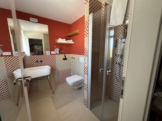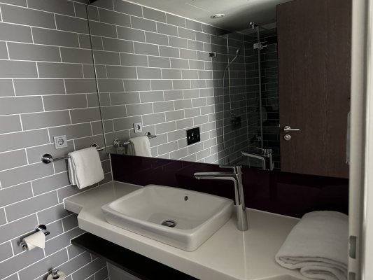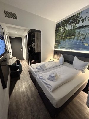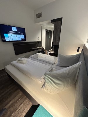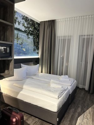 One of the best hotels I've ever visited. Very surprised that the hotel has only ... Di più One of the best hotels I've ever visited. Very surprised that the hotel has only 3 stars. Compared to, for example, Italian 4-star hotels, I would give this hotel at least 6 stars. Very tasty breakfast. The hotel is very modern, has a very good interior and exterior design. Large and comfortable rooms, we had a room with an area of 28 square meters. There is a gym and a co-working space. For €68, this is an ideal option. German quality in every detail