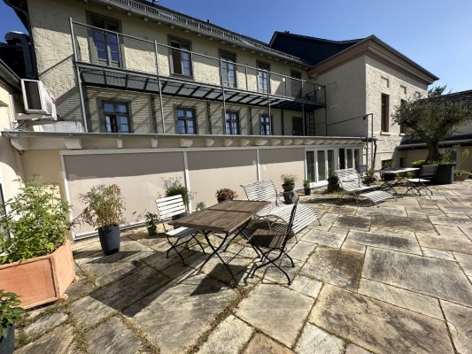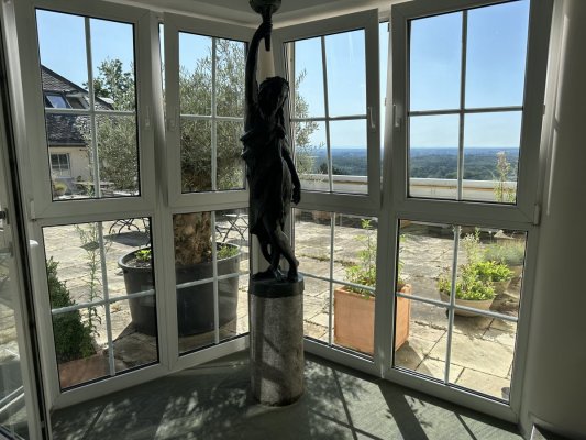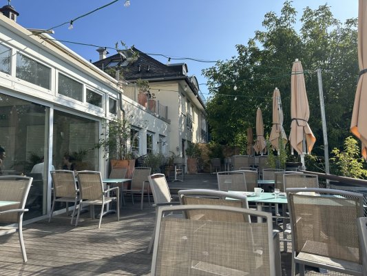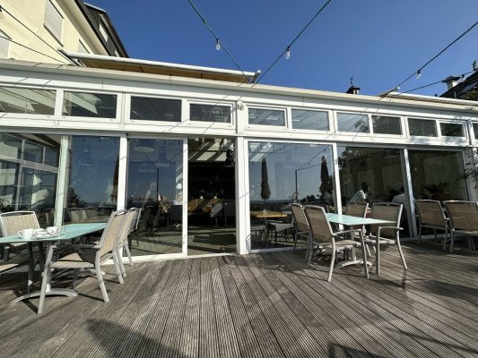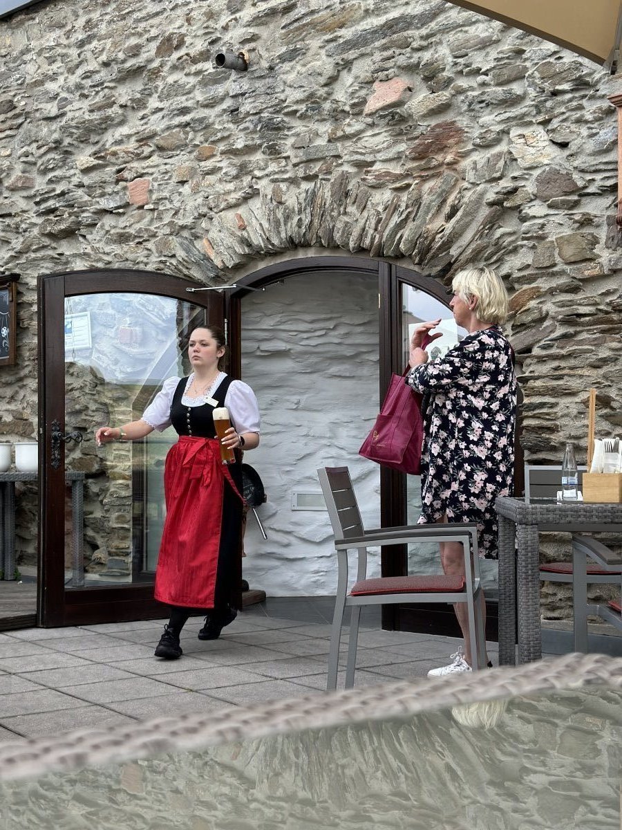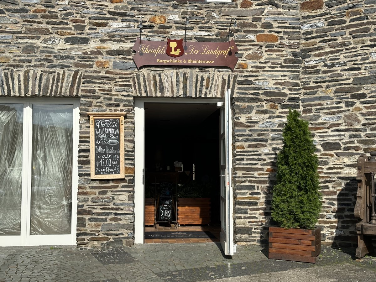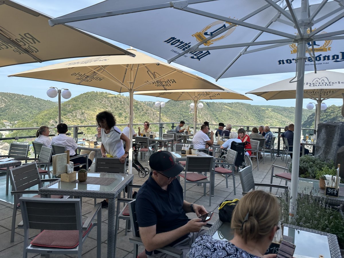 Restaurant with a terrace that offers a magnificent view of the Rhine. Restaurant at the ... Di più Restaurant with a terrace that offers a magnificent view of the Rhine. Restaurant at the hotel, in the style of an old castle. Everything is very beautiful, authentic. But the prices are too high, a glass of Riesling costs almost 9 euros…