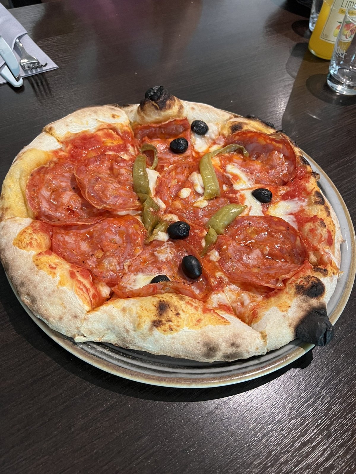 Die Speisekarte bietet eine breite Auswahl an traditionellen italienischen Gerichten, von Antipasti über Pasta bis hin zu köstlichen Pizzen. Ich entschied mich für das klassische Diablo-Pizza, und ich wurde nicht enttäuscht. Der Teig war perfekt dünn und knusprig, die Tomatensoße frisch und aromatisch. Meine Begleitung wählte das hausgemachte Tagliatelle mit Trüffelsoße, was ebenfalls ein Highlight war – reichhaltig, cremig und einfach köstlich.