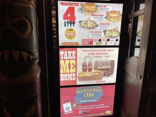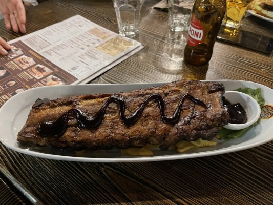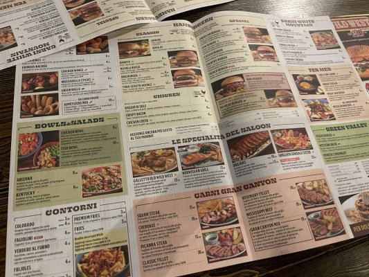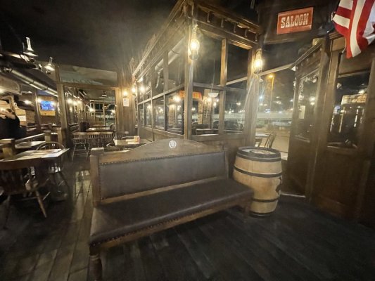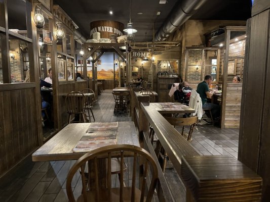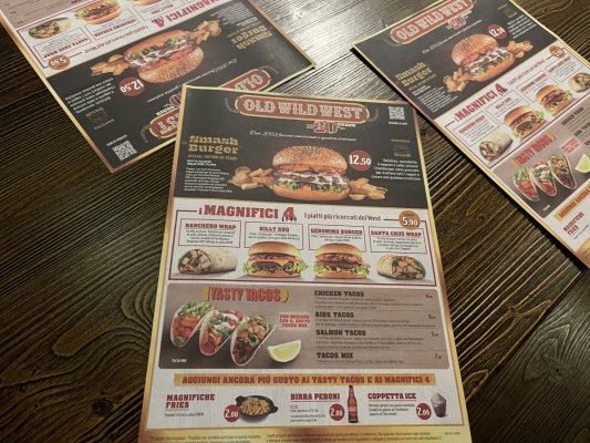 Sono andato con gli amici a cena all'Old Wild West. Un posto piuttosto suggestivo nello stile del selvaggio west. Il menu è vario, ma non ... Di più Sono andato con gli amici a cena all'Old Wild West. Un posto piuttosto suggestivo nello stile del selvaggio west. Il menu è vario, ma non tutto era disponibile. Ma i piatti sono molto unti e il servizio non è ai massimi livelli, purtroppo. Prezzi molto ragionevoli per l'alcol.