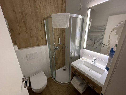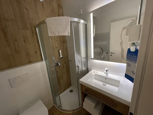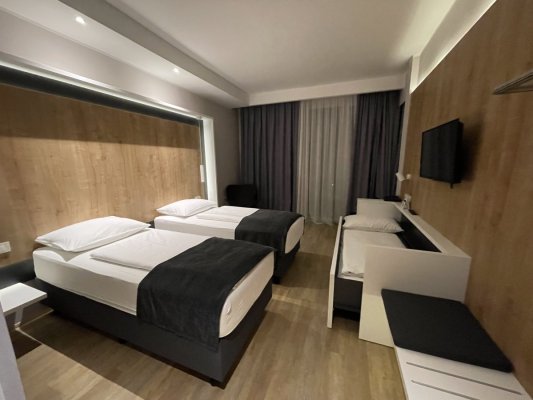 Бронювали номер на трьох. Extra bed шукали довго, бо в них мобільні меблі, стіл трансформується в ліжко, але жодних пояснень або інструкцій. Але це пів ... Di più Бронювали номер на трьох. Extra bed шукали довго, бо в них мобільні меблі, стіл трансформується в ліжко, але жодних пояснень або інструкцій. Але це пів біди. Постільної білизни не було також. Приїхали пізно, с дороги дуже втомлені, тому не дуже хотілося всім цим займатися протягом години.