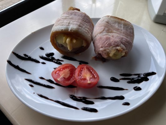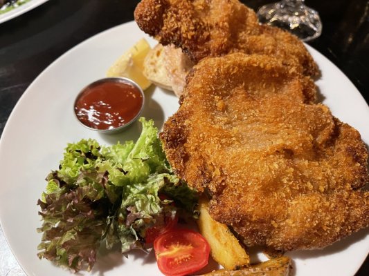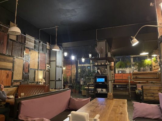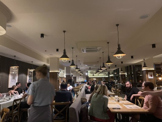 Приміщення величезне, це звичайно плюс. Страви на середньому рівні, точно не ресторанні. Замовив запечений телячий язик. Після нього почувався дуже недобре, або отруївся, або занадто жирна (майонеза було багато) страва була.