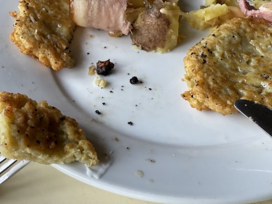 Зашли пообедать в кафе Терасса в Межгорье случайно, были рядом в парикмахерской. Заказали борщ, деруны, ... Di più Зашли пообедать в кафе Терасса в Межгорье случайно, были рядом в парикмахерской. Заказали борщ, деруны, картошку с беконом и десерт. Так невкусно я не ела очень давно… деруны были очень жирные и пригоревшие на сковородке, на что официантка почти не отреагировала, только сказала - ну, сковородка такая, такое бывает… не вкусно и не очень приятно…