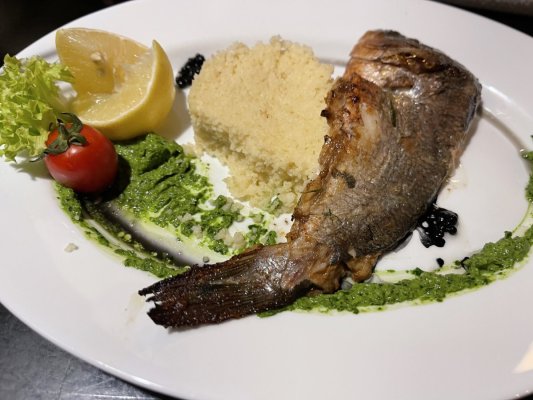 Страви досить прості, без особливих вишуканих смаків, кухня точна не висока ), але цілком прийнятні ... Di più Страви досить прості, без особливих вишуканих смаків, кухня точна не висока ), але цілком прийнятні для швидкого перекусу. Інтер'єр виглядає застарілим, не вистачає сучасного оновлення. Однак найбільша перевага цього місця - це літній майданчик. Він розташований прямо біля фонтанів, що створює чудову атмосферу для обіду або вечері на свіжому повітрі. Якщо вам подобається проведення часу на вулиці, то це точно буде плюс.