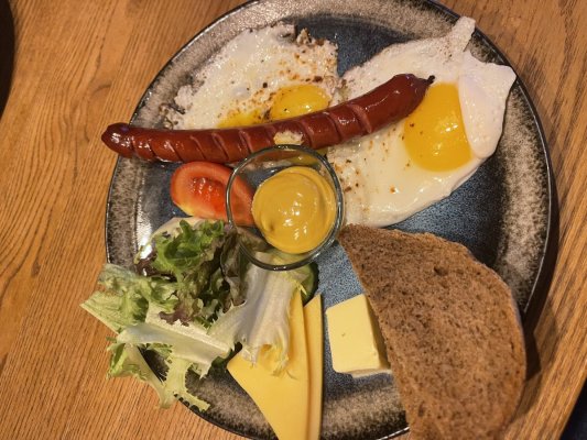 Сніданок приготували швидко, 15 хв. Начебто все непогано, без душі і ціни дуже завищені. І ... Di più Сніданок приготували швидко, 15 хв. Начебто все непогано, без душі і ціни дуже завищені. І по рада до власників, зробіть нормальні фото в меню, бо це просто жах. Рівень провінційноЇ кафешки.