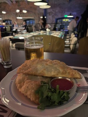 Чебуреки дуже смачні - точно варто спробувати. Подача проста, без прикрас. Інтер’єр затишний і просторий, ... Di più Чебуреки дуже смачні - точно варто спробувати. Подача проста, без прикрас. Інтер’єр затишний і просторий, приємно сидіти. Персонал ввічливий і доброзичливий. Їжу подають десь за 20–30 хвилин, трохи довго. Ціни, як на мене, трохи завищені. Загалом заклад сподобався.