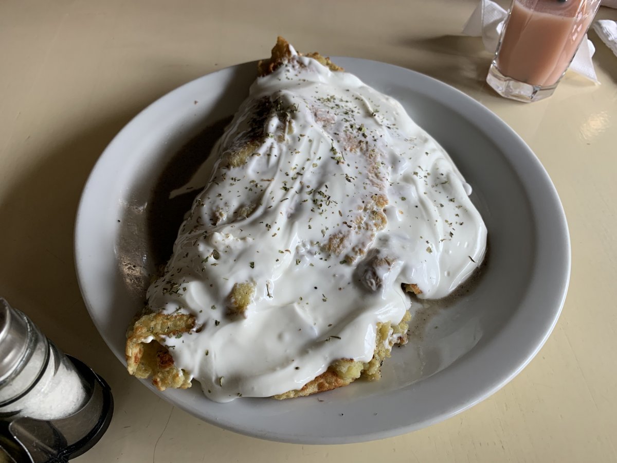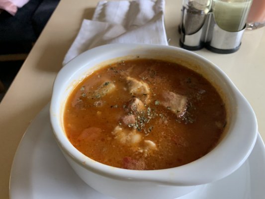 Зашли пообедать в кафе Терасса в Межгорье случайно, были рядом в парикмахерской. Заказали борщ, деруны, картошку с беконом и десерт. Так невкусно я не ела ... Di più Зашли пообедать в кафе Терасса в Межгорье случайно, были рядом в парикмахерской. Заказали борщ, деруны, картошку с беконом и десерт. Так невкусно я не ела очень давно… деруны были очень жирные и пригоревшие на сковородке, на что официантка почти не отреагировала, только сказала - ну, сковородка такая, такое бывает… не вкусно и не очень приятно…