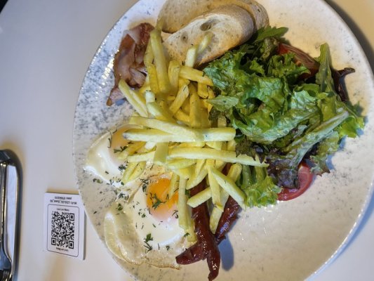 Сніданок приготували швидко, 15 хв. Начебто все непогано, без душі і ціни дуже завищені. І ... Di più Сніданок приготували швидко, 15 хв. Начебто все непогано, без душі і ціни дуже завищені. І по рада до власників, зробіть нормальні фото в меню, бо це просто жах. Рівень провінційноЇ кафешки.