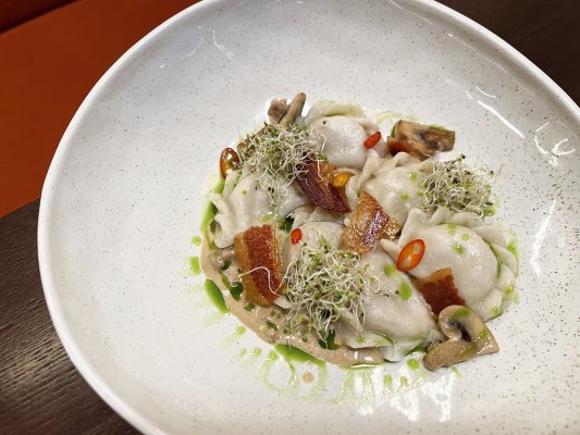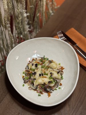 Сказати, що був вражений, нічого не сказати. Настільки смачних вареників ще ніде не доводилось куштувати. Це було неперевершено. Навіть і не уявляв, що можна зробити таке з варениками, подача, смак, кухарям респект. Начинка добре збалансована: картопля ніжна, гриби додають аромату, а бекон — приємної копченості. Соус був легкий і не переважав, а лише доповнював загальний смак. Це точно страви, за якими я ще прийду в цей ресторан, і які я замовлю знову! Пишаюся тим, що в нас відкриваються такі заклади.