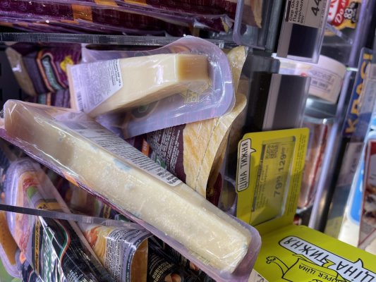 Вчера в Сильпо выбирала сыр и вот, что я увидела. Я, конечно, понимаю что срок хранения сыра подходит к концу, поэтому он со скидкой, но ... Di più Вчера в Сильпо выбирала сыр и вот, что я увидела. Я, конечно, понимаю что срок хранения сыра подходит к концу, поэтому он со скидкой, но это же нужно контролировать. В который раз убеждаюсь, что дешевый сыр только в мышеловке...