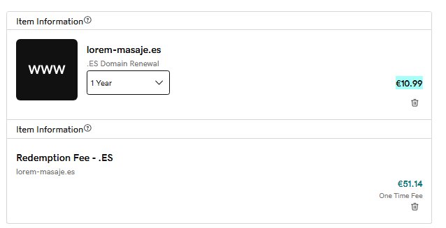 GoDaddy demuestra una vez más ser la PEOR empresa de registros de dominios. No pagué ... Di più GoDaddy demuestra una vez más ser la PEOR empresa de registros de dominios. No pagué a tiempo por mi dominio y ahora me exigen 50€ solo para restaurarlo, cuando TODOS los demás registradores dan al menos un mes de gracia GRATIS. ¿Por qué esta avaricia desmedida? ¡Es simplemente una estrategia para exprimir a los clientes!