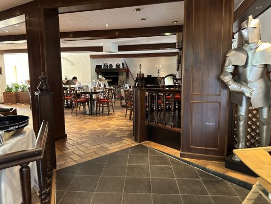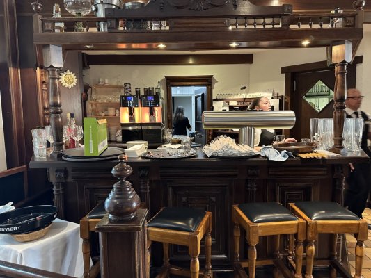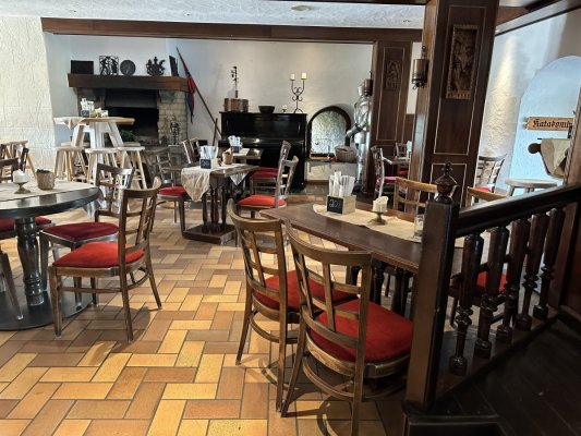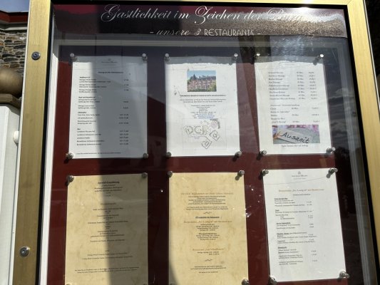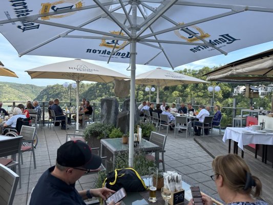 Restaurant with a terrace that offers a magnificent view of the Rhine. Restaurant at the ... Di più Restaurant with a terrace that offers a magnificent view of the Rhine. Restaurant at the hotel, in the style of an old castle. Everything is very beautiful, authentic. But the prices are too high, a glass of Riesling costs almost 9 euros…