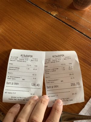 Неочікувано дуже слабка кухня і дуже дорого, без душі. Дуже розчарований. За три ніякі деруни ... Di più Неочікувано дуже слабка кухня і дуже дорого, без душі. Дуже розчарований. За три ніякі деруни 154 грн, це смішно. Це 100 відсотків не ресторан, рівень забігаловки.
